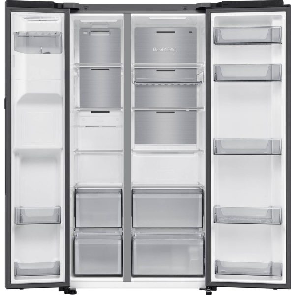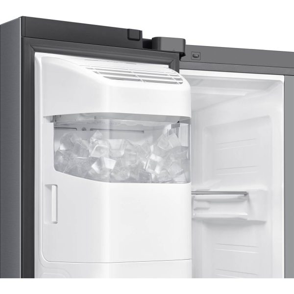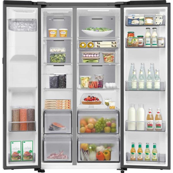Med en is- og vanddispenser har du altid koldt vand lige ved hånden og isterninger klar til at køle din drink yderligere ned. RS80F64KETEF er en VVS-version og kræver en fast vandtilslutning.