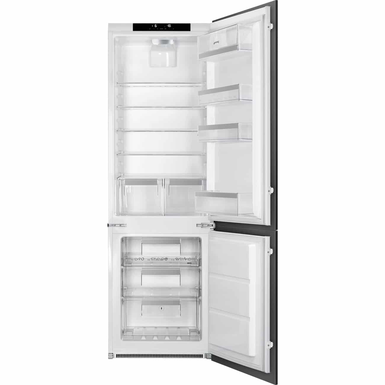 SMEG C8174N3E1 er et stilfuldt og moderne integrerbart køleskab med fryser, perfekt til den moderne husholdning. Med en samlet nettovolumen på 256 liter tilbyder dette køleskab rigelig opbevaringsplads til både friske madvarer og frostvarer. Køleskabet har en elegant sølvfarve og passer smukt ind i ethvert køkkenmiljø.